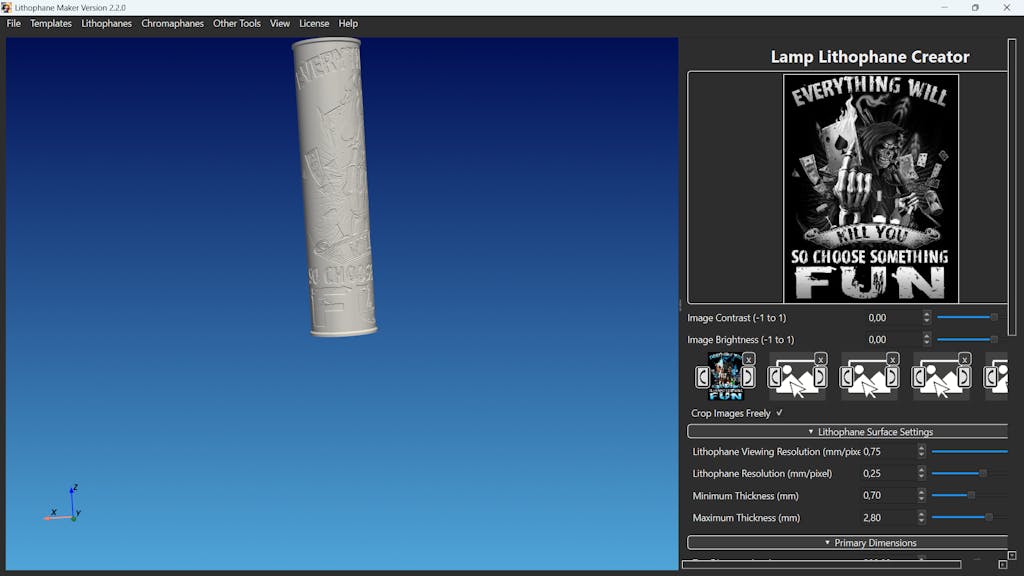 Please be aware that the license is valid for only one computer at a time, but it is easy to transfer the license to a new computer a limited number of times. The program works offline, but the license must be set up with an internet connection. Due to the nature of our digital product, all purchases are final and cannot be refunded. Please carefully review your order before completing your purchase. We are committed to continually improving LMD, and if you have any suggestions for how to improve the program, please send them to support@lithophanemaker.com